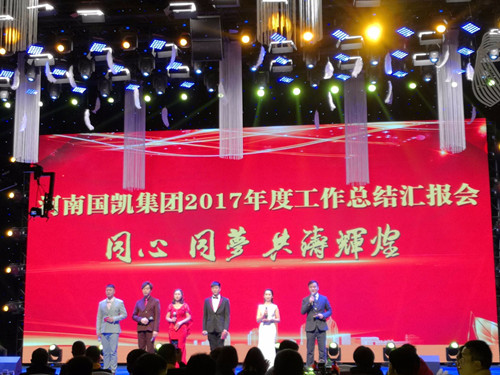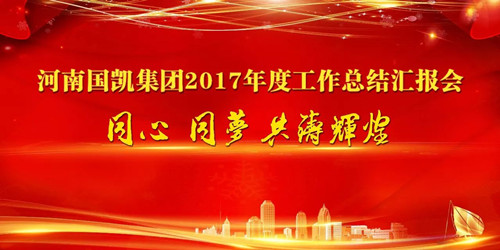 01月03日,2017年河南國凱集團(tuán)年度工作總結(jié)匯報(bào)會在永城漢宮酒店隆重舉行。本屆年會以“同心同夢共鑄輝煌”為主題,來自省內(nèi)各地的集團(tuán)領(lǐng)導(dǎo)、集團(tuán)員工及特邀嘉賓數(shù)百余人歡聚一堂,共襄盛舉。