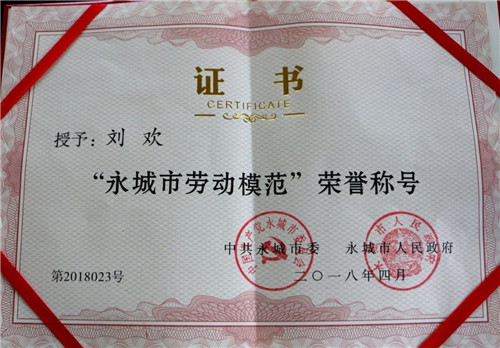 熱烈慶祝:蘭堡灣涂料科技有限公司總經(jīng)理劉歡,榮獲“永城市勞動模范”榮譽(yù)稱號!
