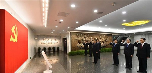2017年10月31日,十九大剛剛閉幕不久,在一個新時代的開始,習近平總書記帶領其他幾位中共中央政治局常委同志,專程從北京前往上海和浙江嘉興,瞻仰上海中共一大會址和浙江嘉興南湖紅船,回顧建黨歷史,重溫入黨誓詞。在南湖革命紀念館熠熠生輝的 黨徽之下,習近平再次強調,“唯有不忘初心,方可告慰歷史、告慰先輩,方可贏得民心、贏得時代,方可善作善成、一往無前。”
