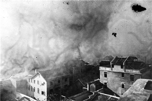 △1939年9月,日軍轟炸長沙,市區燃起大火。