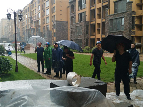 暴雨來臨,公司領導趕赴一線,調動全員緊急作戰,積極排查各處隱患,確保水電暢通!