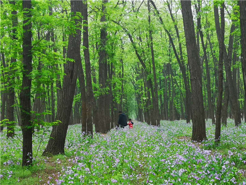 黃河泱泱,槐林蒼蒼。民權(quán)縣地處黃河故道之濱,昔日風沙肆慮,鹽堿遍地,土壤貧瘠。60多年以來,辛勤的民權(quán)人民戰(zhàn)天斗地,不向風沙低頭,不向鹽堿折腰,不向貧瘠示弱,依靠自己勤勞的雙手,不屈的斗志,頑強的作風,硬是在漏水漏肥的沙土地里培育起了6.9萬畝的平原林海——號稱“河南塞罕壩”的申甘林帶,創(chuàng)造了造林奇跡,筑起了“綠色長城”,鑄就了人間豐碑。而今,申甘林帶已成為人們學習“河南塞罕壩”精神的園地。