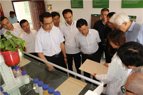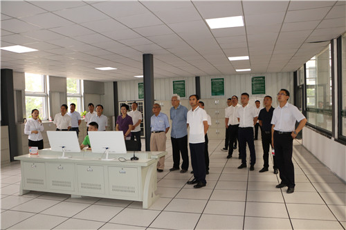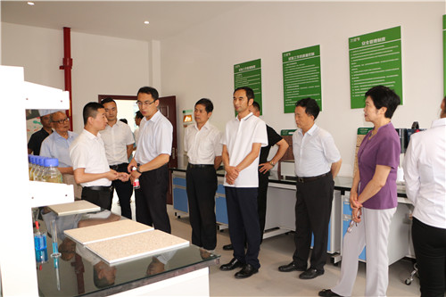 考察組領導參觀蘭堡灣產品實驗室,并現場觀看蘭堡灣最新研發的專利產品與市場同類型產品進行的對比實驗