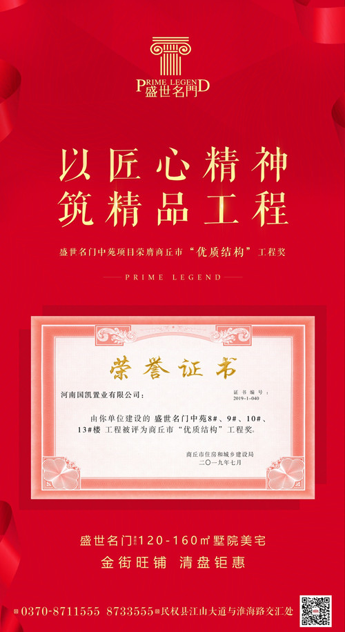 喜報!盛世名門中苑項目榮膺商丘市“優質結構”工程獎!