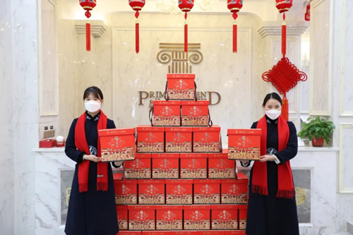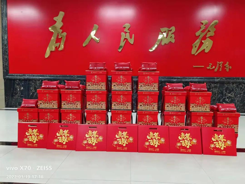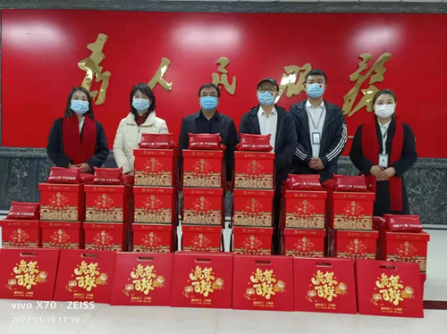 公司提前選購了大量慰問物資,包括10000份春聯、1000份大禮包、2000份防疫包以及方便面等食品。