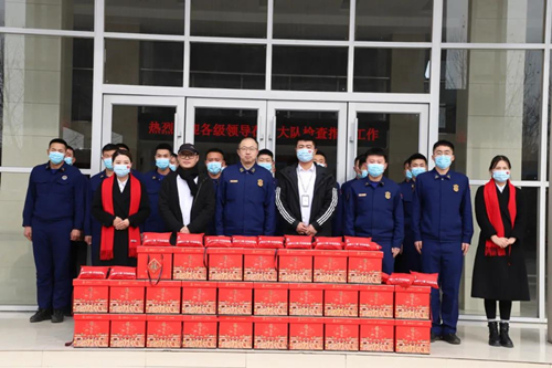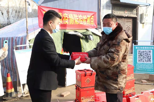 元月13日上午,河南國凱置業前去程莊鎮慰問防疫卡點工作人員,送上防疫包,為困難群眾捐助1000余份春聯。