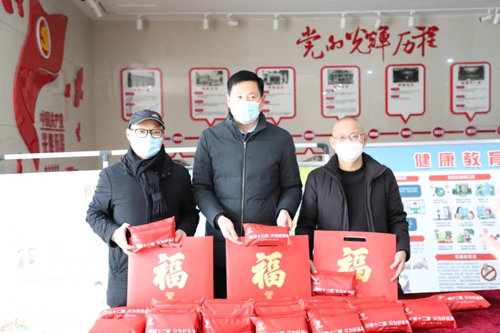 14日赴孫六鎮慰問,為防疫卡點送上疫情防控包、150余份春聯以及新年大禮包。下午,赴人力資源大廈為堅守一線防疫人員發放疫情防控包和100余份春聯。