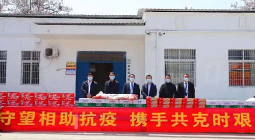 4月16日上午,國凱集團總經理高坤、大居建設總經理丁凱陪同民權縣住建局總工朱冠奎、住建局質監站站長張啟鵬前去綠洲街道辦事處、程莊鎮慰問,給一線抗疫勇士送去火腿腸、方便面、礦泉水各100余件、豬肉200余斤等慰問品,綠洲街道辦事處黨工委書記程中華、程莊鎮黨委書記李傳忠、鎮長白云龍等一起陪同慰問。