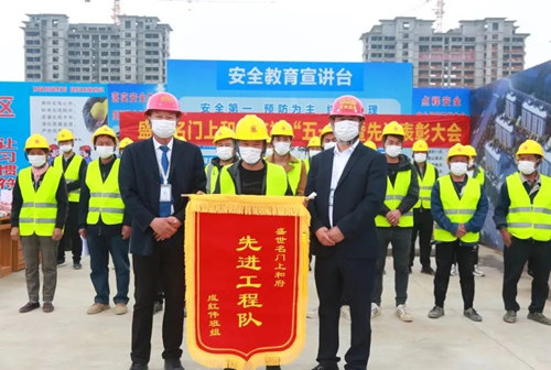 在燦爛的陽光下,工人們容光煥發。趙新葉、劉付帥、白淑華、王磊、李淑蘭、高文浩、楊德領等一大批先進工人代表,以成紅偉為代表的工程隊受到表彰。在領獎臺上,他們綻放幸福的笑容,平時流淌的汗水變成了滿足的驕傲!