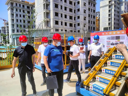 不僅如此,近期,盛世名門上和府項目還迎來了河南省質量標準化示范工地驗收,商丘市住建局質監站榮站長、民權縣住建局朱局長、質監站張站長、曹站長一行蒞臨項目工地,檢查驗收。