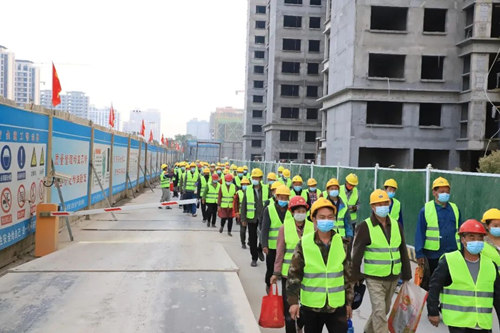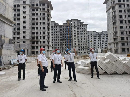 公司領導在深入勘查了施工現場后對施工工作做出明確指示,積極推進項目建設,加快推進項目建設進度,最大力度確保工程建設質量與建設進度,提前保質保量完成交樓!