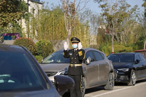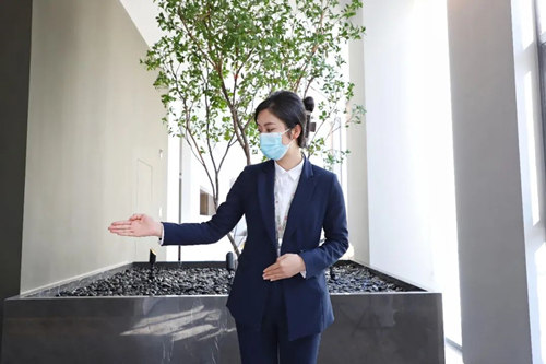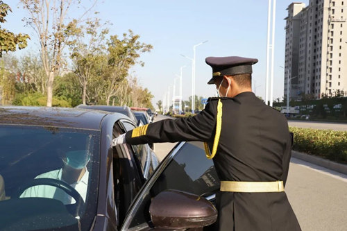 10米外的第一抹微笑,來自禮賓員的致意。45°的敬禮動(dòng)作,誠摯而響亮的問候聲響起,跑步前進(jìn),用標(biāo)準(zhǔn)化姿勢完成停車指引,右手開車門、左手為客戶護(hù)頭,撐開晴雨傘,一路陪伴客戶抵達(dá)美好生活館內(nèi),禮賓員的連貫服務(wù)一氣呵成。