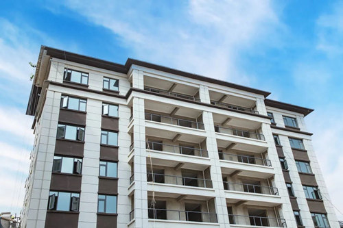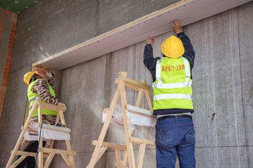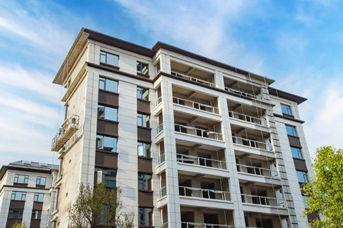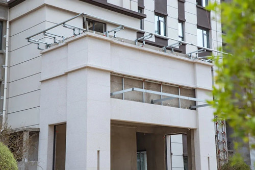 目前,清楓苑地塊窗戶、陽臺欄板框、門廳石材施工已全部完成。
