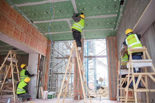 地下室消防管道完成80%;電纜橋架完成40%;頂板批白完成60%。現階段工期進度比原計劃提前約150天。