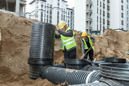 線管預埋、管道預埋......工人們各司其職,快速推進各項施工任務,工地面貌日新月異。
