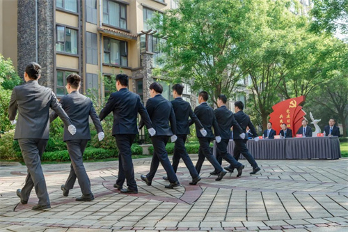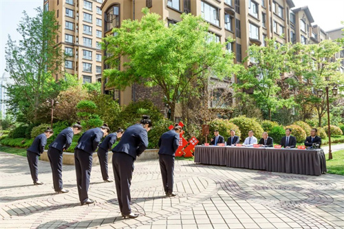隨著總指揮的一聲令下,物管部各隊有序的進行展示,從基本的立定、稍息、跨立、敬禮,再到物業(yè)常用的指向手勢,一動一靜之間展現(xiàn)出盛世名門物業(yè)人的專業(yè)素養(yǎng)。