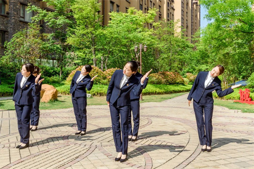 隨后,物業(yè)客服部形體禮儀考核環(huán)節(jié)開始,美麗的客服小姐姐們面帶微笑展示標準化的禮儀動作,一舉一動中皆彰顯著盛世名門物業(yè)人對業(yè)主服務(wù)的良好精神面貌。