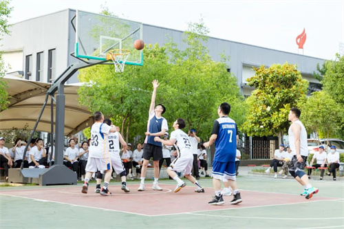 伴隨著歡呼聲和加油聲,熱烈的氣氛燃動籃球賽場,瀟灑的遠投三分,果斷的單刀突破,強力的彈跳扣殺,國凱健兒在球場上賽出了團結拼搏的奮斗精神。