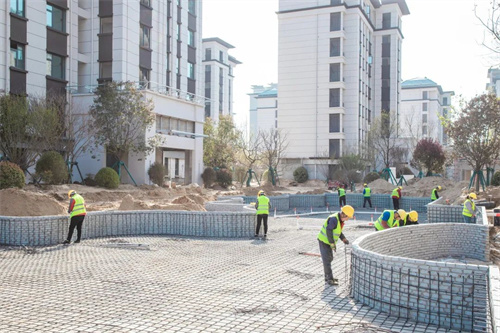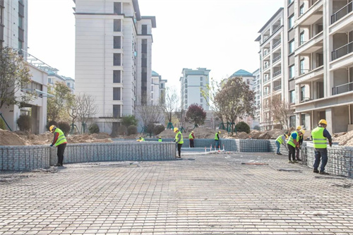這不,工人師傅在施工過程中,每完成一段距離的鋪磚,就開始用水平尺檢查平整度,這一股子認真勁兒,任何暇疵都逃不過他的眼睛。