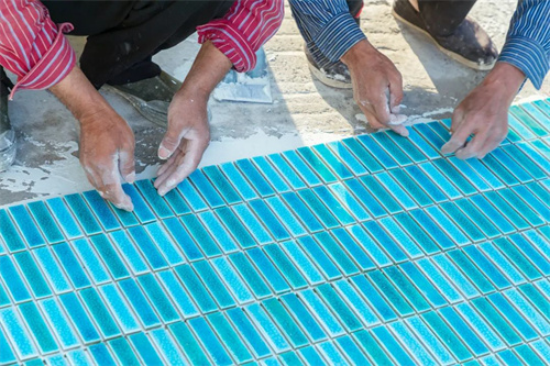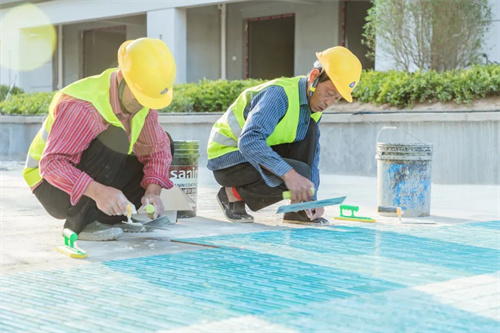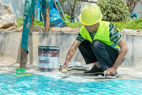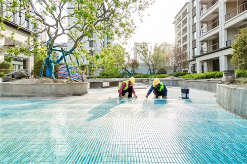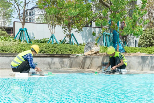現階段正在進行池底瓷磚粘貼工作,施工過程中放線要求準確、標高控制精確,貼完之后立即進行成品保護。