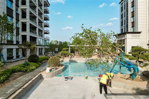 歷時2個月多月,從支模、塑形、澆筑、貼磚......我們不斷記錄著清雅苑水系建造的全過程,讓每位業主家人親眼見證家園建設的每一次新變化。