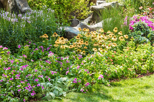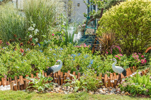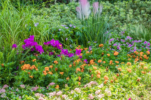 景觀設計師巧妙的進行植物搭配,從主次、疏密、色彩、質地、株形等方面著手,整體富有變化且顏色多樣,十幾余種形態各異的花卉植物,像是打翻了大自然的調色盤一樣,搖曳生姿、絢麗繽紛,盎然又多姿。 ? 實拍圖