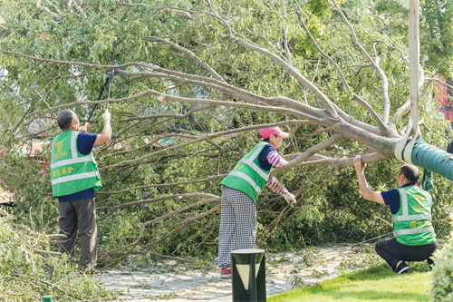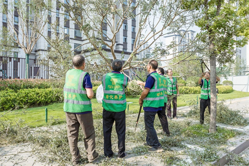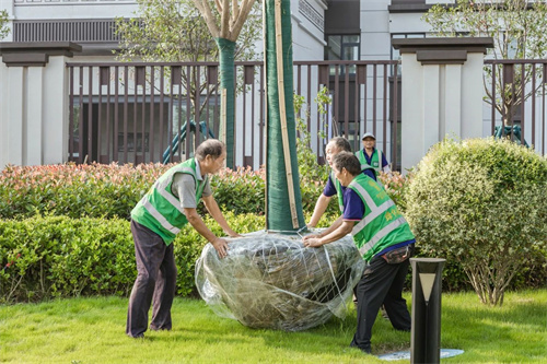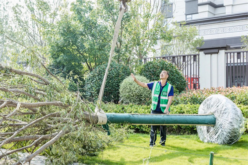 盛世名門對于樹木全冠移植有著嚴苛的要求——移植前要對疏枝敗枝進行修剪,最大限度保持樹冠完整,這不,景觀師也親自上場進行細心的修剪。