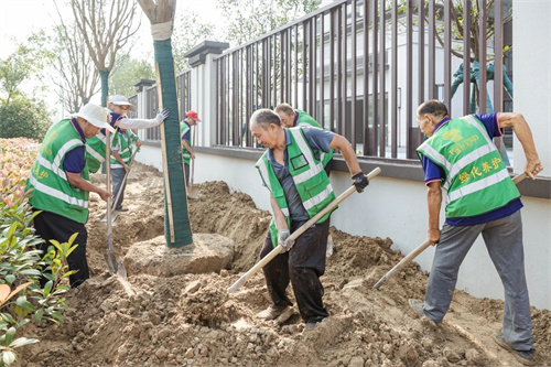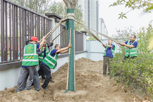 種樹雖小事,但盛世名門對此卻是下足了功夫,定點、挖坑、種植......一幫人費盡九牛二虎之力讓這29棵名貴國槐,深深扎根在我們所熱愛的這片故土之中。