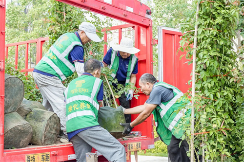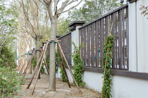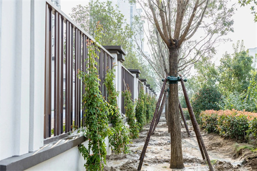 早在2022年11月就曾升級項目門口丁香路上的綠化景觀,花費重金種植了60多年樹齡的叢生烏桕、20多年樹齡的銀杏樹、10多年樹齡的桂花樹等全冠移植的名貴樹種,如今臨近交房,為園區周圍再次補種了29棵大型國槐樹和400棵歐月薔薇花苗藤,然而這只是本次升級的一部分。