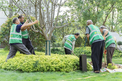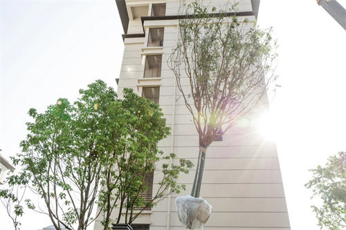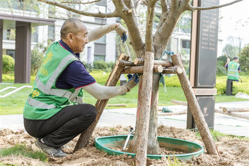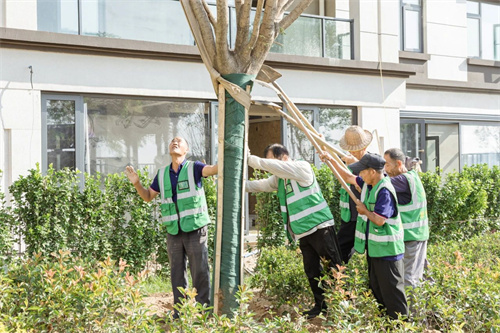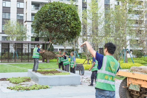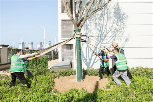 大型國(guó)槐樹(shù)卸苗和種植時(shí),選用吊車360度定位,反復(fù)調(diào)試角度,只為了讓最美的枝葉朝著最好的方向。在上和府,一草一木皆有生命與寓意,為社區(qū)勾勒著最美的生活圖景。