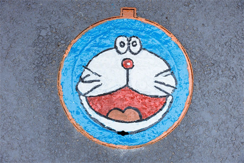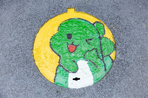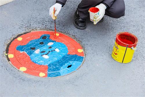 隨著筆刷的揮舞,一個(gè)個(gè)精美的卡通圖案逐漸成形。有小恐龍、有大章魚、有海綿寶寶......一筆一刷的涂鴉,將原本單調(diào)乏味的井蓋,變得有趣鮮活。 ? 實(shí)拍圖