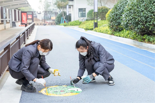 然而完成一個(gè)彩色井蓋需要進(jìn)行多道工序,包括清洗、線稿起形、上色、風(fēng)干、定型等。這些程序雖然繁雜且瑣碎,但物業(yè)客服依舊保持著熱情洋溢的心情,認(rèn)真耐心地進(jìn)行創(chuàng)作。 ? 實(shí)拍圖
