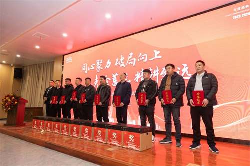 2023年12月27日,河南國凱集團民權地區“同心聚力 破局向上 克儉蓄能 精耕致遠”2023-2024年度總結暨先進員工表彰大會隆重舉行。全體同仁齊聚一堂,共襄盛會,共同回顧成果豐碩的2023,展望前景廣闊的2024。