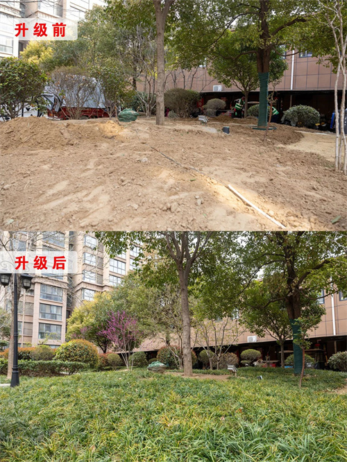 瞧這改造前和改造后的對比圖,變化真不是一般的大,補種后的綠植鮮活綠意、生機盎然,不少路過的業(yè)主表示:物業(yè)真用心,這綠油油的一片,一眼看過去心情都變好了。