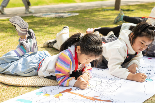 在孩子的眼中,萬物都有著別樣的意義,換個角度看,他們歡樂自由肆意繪畫的模樣,正是獨屬春日最美的畫卷。