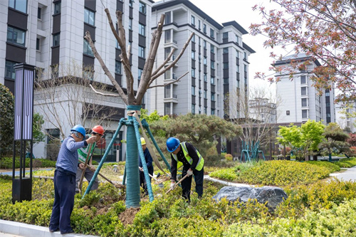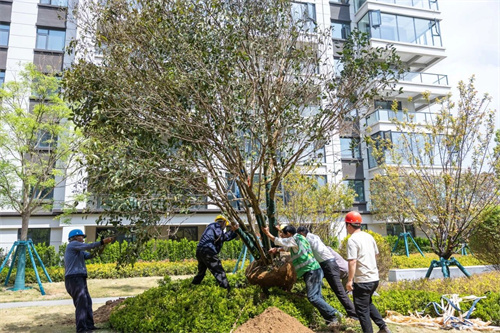 盛世名門緊抓春季有利時機,全面開展綠化苗木補栽工作,及時對長勢不好的苗木進行更換補種,最大化提升景觀效果,提高綠植覆蓋率,讓居住在此的業(yè)主無時無刻不感受它如畫的風景。