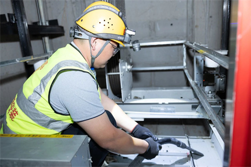 他們還會深入電梯底坑,檢查底坑有無滲水、積水,照明是否正常,底坑漲緊輪、液壓緩沖器油位,檢修盒以及各個安全開關工作是否正常,并對底坑衛生進行清掃。