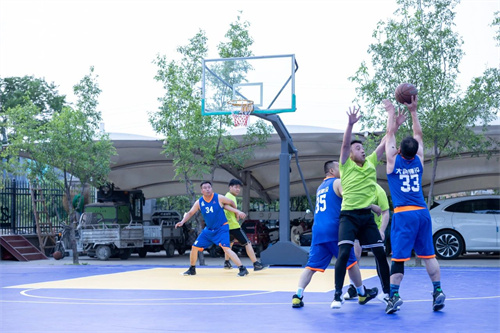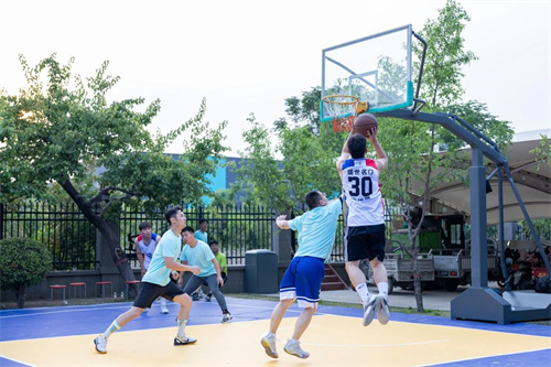 臨近傍晚,開始了緊張的籃球賽,運球、傳球、斷球、投籃運動員們個個生龍活虎,突破上籃、精準三分。步伐靈活、動作敏捷、反應迅速,觀眾歡呼聲此起彼伏。