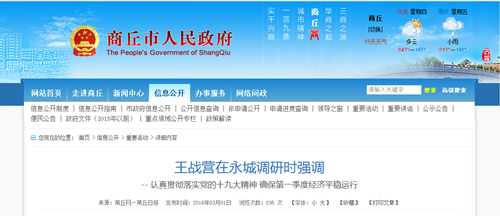 為督促黨的十九大精神在我市全面落實,確保第一季度經濟平穩運行、實現首季開門紅,2月27日至28日,市委書記王戰營深入永城市鄉村、企業,就基層黨建、脫貧攻堅、鄉村振興、轉型發展等工作進行調研。