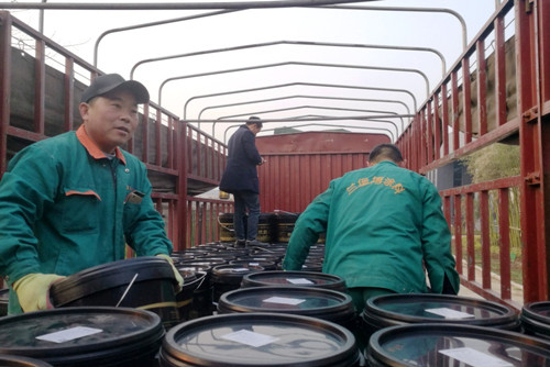 “這是滑縣夢想城的800噸水漆,大家抓緊時間裝車。”