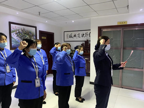 企業(yè)文化是一個公司的靈魂,為貫徹深入了解公司發(fā)展歷程,學(xué)習(xí)企業(yè)文化,盛世名門物業(yè)組織新員工進行入職宣誓和學(xué)習(xí),增強新員工的集體責(zé)任感、榮譽感和使命感,更好在崗位上積極進取,發(fā)光發(fā)熱。
