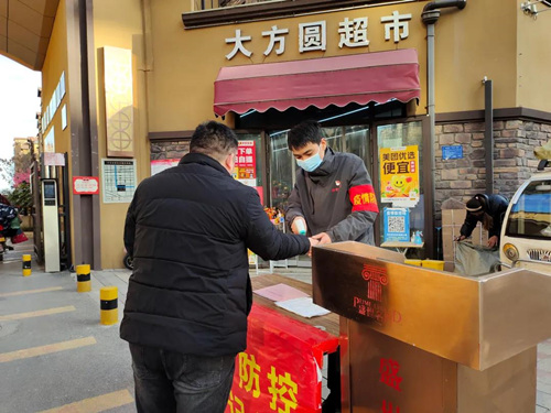 對參與的志愿者,黨支部提出嚴格要求,他們的覺悟都很高。在現(xiàn)場,盛世名門紅色物業(yè)志愿者認真負責地維持秩序,提醒前來做核酸檢測的市民排隊、保持一米的間距,幫助噴灑酒精消毒,遇到有的老年人不習慣操作手機,一遍遍的幫助他們掃碼填寫信息。
