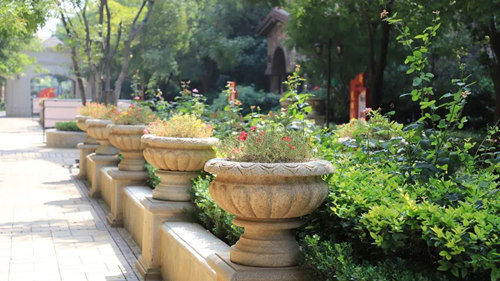 在“瑤池”的東西兩側(cè)都是長長的花池,每個(gè)花池上座有兩排希臘風(fēng)格的花盆,花盆里裝滿了應(yīng)季的盆栽,這一盆盆的盆栽里盛開的花就像是盛世名門三期物業(yè)送給業(yè)主的“藥”!在傍晚,您在這漫步的時(shí)候,淡淡的花香可以治療您一天的勞累,生活中的憂傷與煩惱。