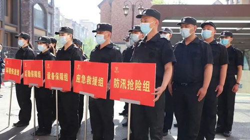 他們在日常的保潔、定期每周清洗垃圾桶、噴水、消毒、治安巡邏防護(hù)之余,還會在下雪天,及時(shí)加班加點(diǎn)清掃積雪,雨季來臨之際他們又演練防汛救災(zāi),他們還演練防火等技能……