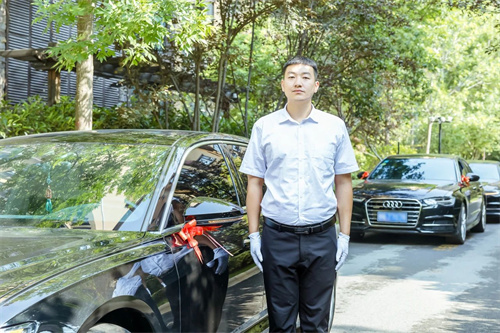 婚禮當天,物業專屬奧迪婚車服務團隊早已恭候一旁,美好的祝福、親切的笑容、體貼的舉動、周到的服務,給新人及親友如沐春風的美好體驗,讓業主在八方來賓面前有面兒的同時,寓意美好生活與新婚業主相伴隨行。
