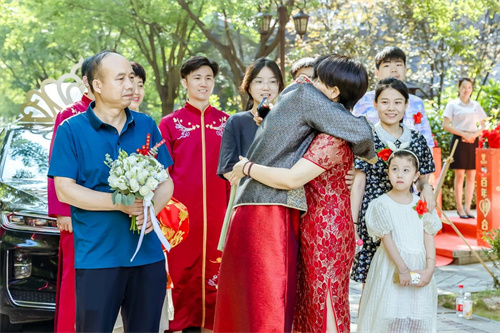 迎著夏日,踏著陽光,新郎一家人的臉上洋溢著幸福的笑容,構成了一幕幕最溫馨、最美好的畫面。在喜慶熱鬧的氣氛下,出發迎接新娘,一場絢麗的婚禮即將浪漫上演。