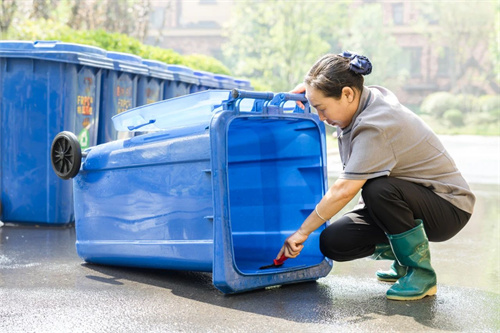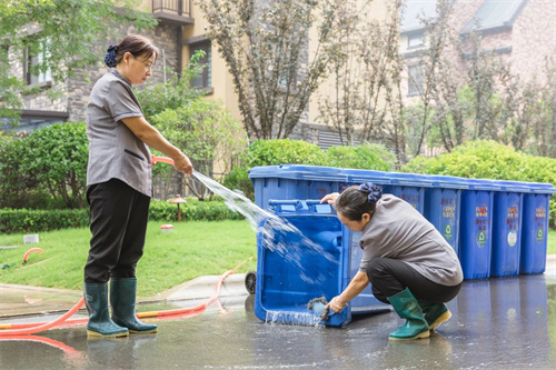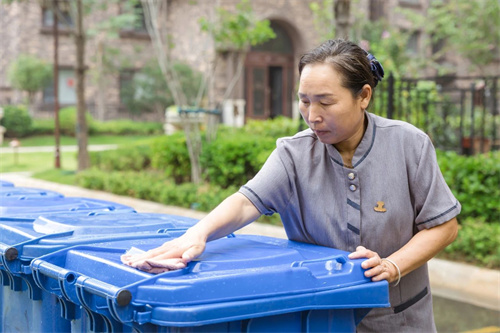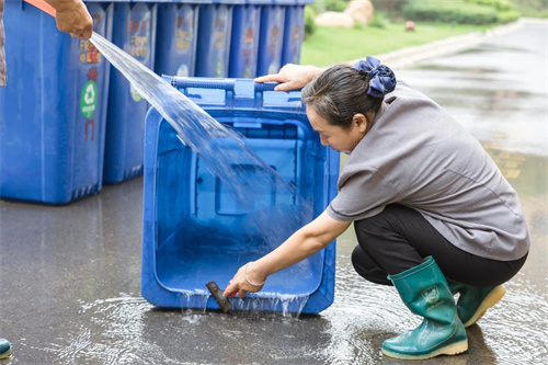 為避免垃圾桶細菌滋生和異味,盛世名門所有已交付項目物業(yè)十年如一日,每周都會定期對園區(qū)所有垃圾桶做刷洗和消毒專項行動,認真做好這項“毫不起眼”的垃圾桶清洗工作。