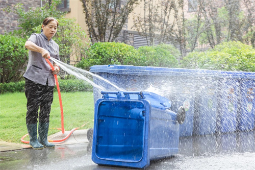 此外,還對垃圾桶破損、缺損問題進行了摸底調(diào)查、分類登記,對破損垃圾桶及時更換。當然了,給垃圾桶“洗澡”過后,也要對地面污漬、積液等進行多次清洗,保證園區(qū)道路的整潔無異味。