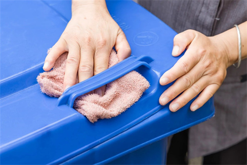 為了不影響業(yè)主的正常使用,清洗后垃圾桶上殘留的水漬并不是等候晾曬風干,而是用毛巾仔細地擦拭,節(jié)約等候時間,方便快速投入使用。