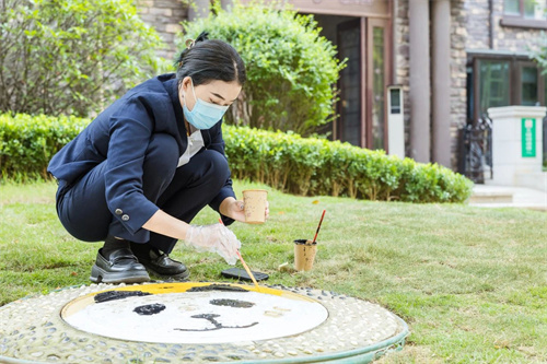 這項看似簡單的井蓋涂鴉,實則需要很多的天賦、耐心和技巧,為保證成品的美觀度,本著“不做則已,要做就要做到最好”的物業工作精神,每次挑選的物業客服都是有畫畫天賦才藝在身的!